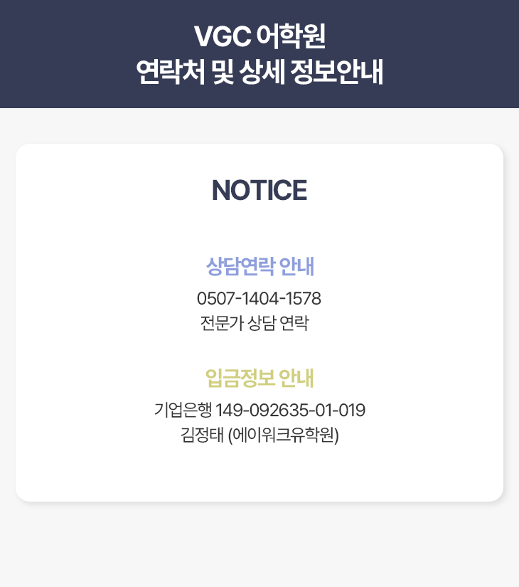VGC어학원 상세 정보입니다.
